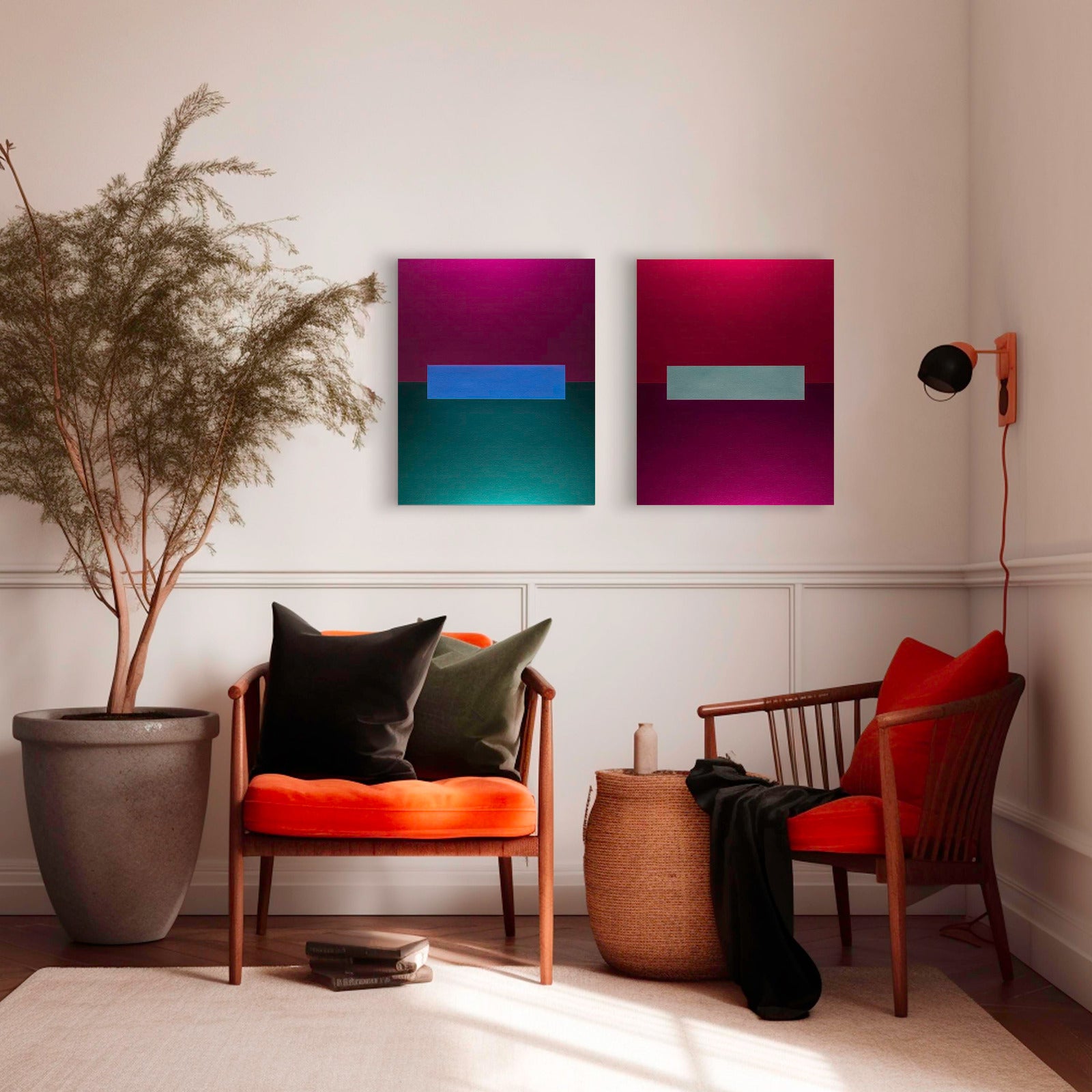 Attached to the frame is a french cleat, allowing the piece to be hung as soon as it arrives.